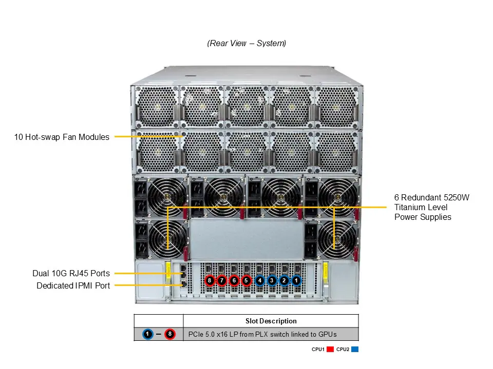Expansion Slots | 8 PCIe 5.0 x16 LP slots, 2 PCIe 5.0 x16 FHHL slots |