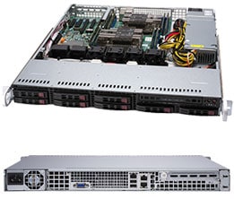 Key Applications Data Center Optimized Web Server Enterprise Server Managed Hosting Short Depth Key Features 1. Dual Socket P (LGA 3647) support 2nd Gen Intel® Xeon® Scalable processors (Cascade Lake/Skylake)‡2. 8 DIMMs; up to 2TB 3DS ECC DDR4-2933MHz† RDIMM/LRDIMM 3. 1 PCI-E 3.0 x8 (FHHL) slot4. 8 Hot-swap 2.5" SATA3 drive bays, 1 Slim DVD-ROM drive (optional), Optional PCIe/SATA M.2 drive M.2 holder: MCP-450-00003-0N5. 2 1GbE LAN ports via Marvell 88E15126. IPMI 2.0 + KVM with Dedicated LAN7. 1 VGA, 2 USB 2.0 (rear)8. 2 SuperDOM (Disk on Module) ports; 1 PCIe/SATA M.2 drive connector9. 600W High-Efficiency Power Supply Platinum Level Certified ![]() |