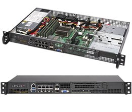 Key Applications Network Security Appliance Edge Computing Server Virtualization Server Key Features 1. Intel® Atom® processor C3758, Single socket FCBGA 1310; 8-Core, TDP 25W2. 1x 3.5" or 4x 2.5" internal drive bays3. 1 PCI-E 3.0 x4, 1 M.2 (M-Key 2242/ 2280, SATA3/PCI-E 3.0 x2), 1 M.2 (B-Key 3042/2280, SATA3/PCI-E 3.0 x2/USB 3.0)4. Up to 256GB ECC RDIMM DDR4 2400MHz or 64GB ECC/non-ECC UDIMM in 4 DIMM slots5. 8 RJ45 GbE LAN, 2 SFP GbE LAN, 1 dedicated IPMI RJ45 GbE LAN6. 2 USB 3.0, 1 VGA, 1 SuperDOM, TPM7. 3x 40x28mm 4-pin PWM fans8. 200W Low-noise AC-DC power supply ![]() |
