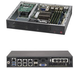 Key Features - Embedded Networking Applications - Network Security Appliance - FireWall Applications - Virtualization Server 1. Intel® Xeon® processor D-1518, Single socket FCBGA 1667; 4-Core, 8 Threads, 35W2. System on Chip3. 1x 2.5" fixed drive bay with bracket (when AOC area is not occupied)4. Up to 128GB ECC RDIMM DDR4 2133MHz or 64GB ECC/non-ECC UDIMM in 4 sockets5. 1 PCI-E 3.0 x8 AOC slot (LP), Mini PCI-E (mSATA support), M.2 PCI-E 3.0 x4 (SATA support), M Key 2242/2280/221106. 2x 10G SFP+, 6 GbE LAN, and dedicated LAN for IPMI 2.07. VGA via BMC, 2 USB 3.0 ports8. Passive CPU heat sink and 2x 40mm chassis fans 9. DC power adapter ![]() |