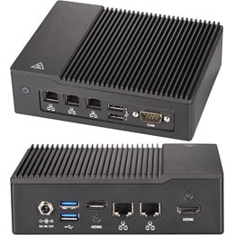 Key Features - IoT Gateway - Entry Networking Appliance 1. Intel® Atom® processor E3940 (9.5W, 4C) Single socket FCBGA 12962. System on Chip3. 1 SATA 3.0 for 7mm 2.5" SATA SSD, 1 M.2 B-Key 2242 for SATA SSD4. Up to 8GB Unbuffered Non-ECC SO-DIMM, DDR3L-1866MHz, in 1 socket5. 1 Half size Mini-PCIe, 1 M.2 B-Key 2242/3042, 1 M.2 E-Key 22306. 5 LAN with Intel I210-IT7. 2 USB 3.0, 2 USB 2.0, 1 COM, 2 HDMI, ALC 888S HD Audio, 1 TPM 2.0 onboard8. Fanless design9. Lockable 12V DC 40W power adapter ![]() |