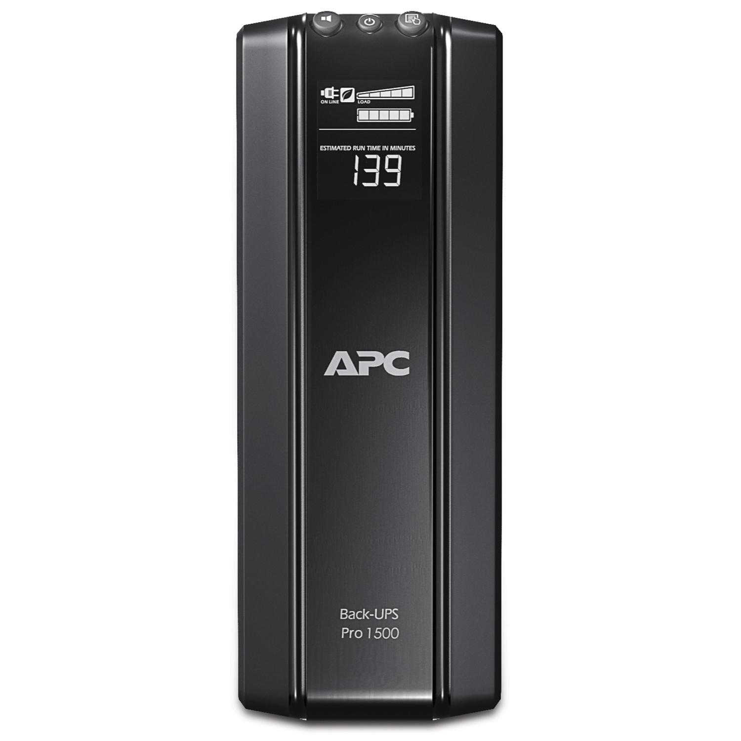 APC Back-UPS PRO BR1500G-FR - Noodstroomvoeding, 1500VA, 6x Penaarde(België), USB, uitbreidbare runtime. UPS-topologie: Line-interactive, Output power capacity: 1,5 kVA, Uitgangsvermogen: 865 W. Stopcontacttypes: Type E / F. Batterijtechnologie: Sealed Lead Acid (VRLA), Accu/Batterij oplaadtijd: 8 uur. Kleur van het product: Zwart, Snoerlengte: 1,83 m. Breedte: 112 mm, Diepte: 380 mm, Hoogte: 301 mm