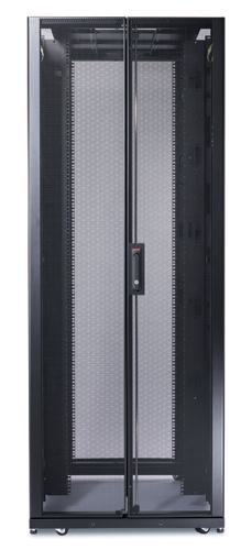 APC NetShelter SX 42U 750mm(b) x 1200mm(d) 19" IT rack, behuizing met zijpanelen, zwart. Soort: Vrijstaande rek, Rackcapaciteit: 42U, Maximale gewichtscapaciteit: 1701 kg, Sleutelsleuf, Verstelbare voeten, Verbeterd kabelbeheer, Zwenkwieltjes. Gewicht: 161,4 kg. Kleur van het product: Zwart