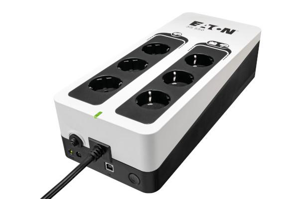 Eaton 3S550D. UPS-topologie: Stand-by (Offline), Output power capacity: 0,55 kVA, Uitgangsvermogen: 330 W. Stopcontacttypes: Type F, Aantal AC uitgangen: 6 AC-uitgang(en). Batterijtechnologie: Sealed Lead Acid (VRLA). Kleur van het product: Zwart, Wit, Snoerlengte: 1,5 m. Certificering: CE/EAC/Ukr/Cm/CB report