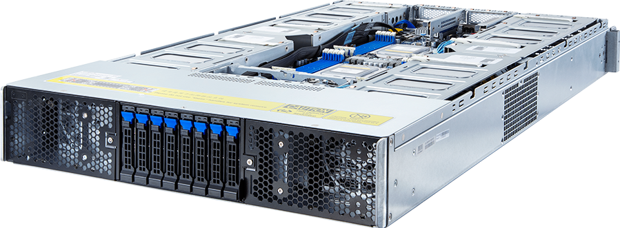 GIGABYTE G292-Z45. Processor socket: Socket SP3, Compatibele processors: AMD EPYC. Ondersteunde geheugen types: DDR4-SDRAM, Ondersteunend DIMM module capaciteiten: 128GB, Ondersteunende RDIMM klok snelheden: 3200 MHz. On-board graphics adapter model: Aspeed AST2500. Ethernet interface type: Gigabit Ethernet, LAN controller: Intel® I350-AM2. Type behuizing: Rack (2U), Kleur van het product: Grijs, Aantal ventilatoren: 8 ventilator(en)