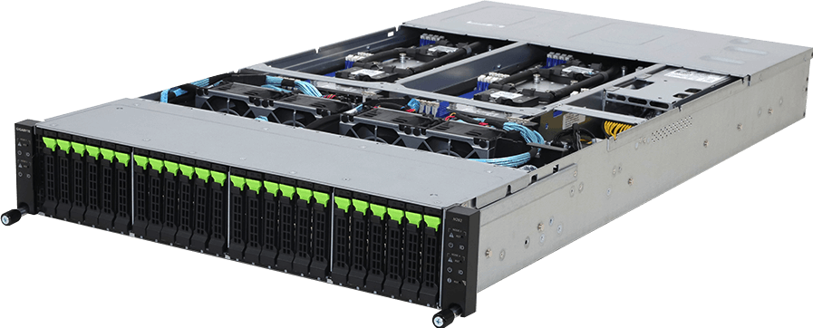 GIGABYTE H262-ZL0. Processor socket: Socket SP3, Compatibele processors: AMD EPYC. Ondersteunde geheugen types: DDR4-SDRAM, Ondersteunend DIMM module capaciteiten: 128GB, Geheugen kanaal: Achtkanaals. On-board graphics adapter model: Aspeed AST2500. Ethernet interface type: Gigabit Ethernet, LAN controller: Intel® I350-AM2. Type behuizing: Rack (2U), Kleur van het product: Grijs, Aantal ventilatoren: 4 ventilator(en)