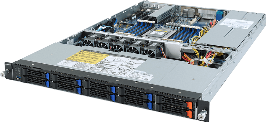 GIGABYTE R152-Z31. Ondersteunde geheugen types: DDR4-SDRAM, Ondersteunende RDIMM klok snelheden: 2933,3200 MHz, Geheugen kanaal: Achtkanaals. Opslagschijf afmetingen ondersteund: 2.5". On-board graphics adapter model: Aspeed AST2500. Ethernet interface type: Gigabit Ethernet, Ethernet LAN, data-overdrachtsnelheden: 10,100,1000 Mbit/s, LAN controller: Intel® I350-AM2. Type behuizing: Rack (1U), Kleur van het product: Zwart, Aantal ventilatoren: 5 ventilator(en)