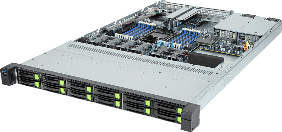 GIGABYTE R163. Chipset moederbord: Intel C741, Processor socket: LGA 4677 (Socket E), Processorfabrikant: Intel. Ondersteunde geheugen types: DDR4-SDRAM, Ondersteunend DIMM module capaciteiten: 256GB, Ondersteunende RDIMM klok snelheden: 4800 MHz. Opslagschijf afmetingen ondersteund: 2.5,M.2. On-board graphics adapter model: Aspeed AST2500. Ethernet interface type: Gigabit Ethernet, Ethernet LAN, data-overdrachtsnelheden: 10,100,1000 Mbit/s