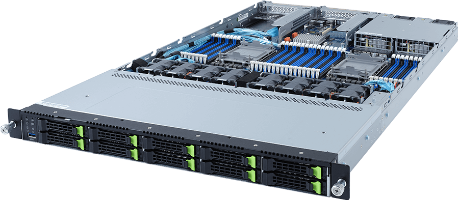 GIGABYTE R182-NA0. Chipset moederbord: Intel C621A, Processor socket: LGA 4189. Ondersteunde geheugen types: DDR4-SDRAM, Ondersteunende RDIMM klok snelheden: 2666,2933,3200 MHz, Geheugen kanaal: Achtkanaals. Opslagschijf afmetingen ondersteund: 2.5". On-board graphics adapter model: Aspeed AST2500. Ethernet interface type: Gigabit Ethernet, Ethernet LAN, data-overdrachtsnelheden: 10,100,1000 Mbit/s, LAN controller: Intel® I350-AM2