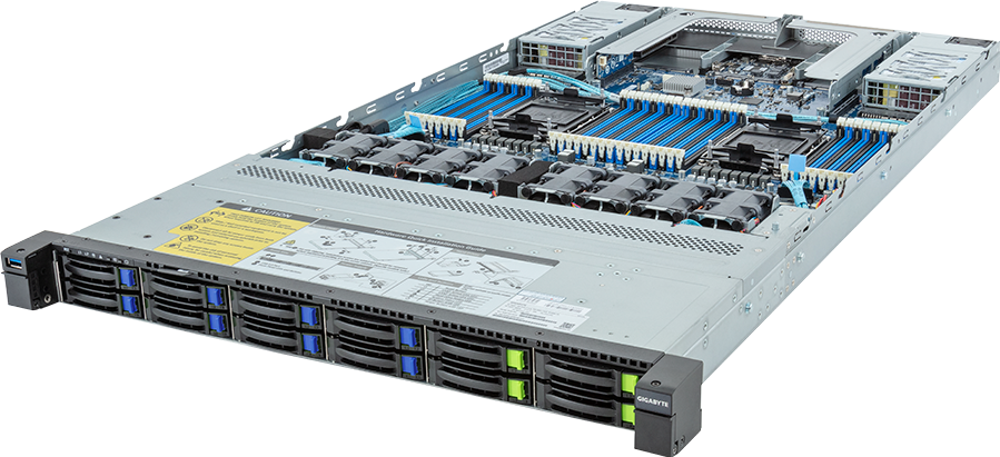 GIGABYTE R183. Chipset moederbord: Intel C741, Processor socket: LGA 4677 (Socket E), Processorfabrikant: Intel. Ondersteunde geheugen types: DDR4-SDRAM, Ondersteunend DIMM module capaciteiten: 16GB, 32GB, 64GB, 128GB, Ondersteunende RDIMM klok snelheden: 2933,3200 MHz. Opslagschijf afmetingen ondersteund: 2.5". On-board graphics adapter model: Aspeed AST2500. Ethernet interface type: Gigabit Ethernet, Ethernet LAN, data-overdrachtsnelheden: 10,100,1000 Mbit/s, LAN controller: Intel® I350-AM2