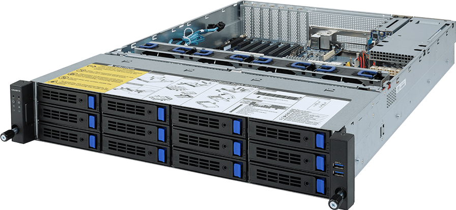 GIGABYTE R272-Z30. Ondersteunde geheugen types: DDR4-SDRAM, Ondersteunende RDIMM klok snelheden: 2933,3200 MHz, Geheugen kanaal: Achtkanaals. Opslagschijf afmetingen ondersteund: 3.5". On-board graphics adapter model: Aspeed AST2500. Ethernet interface type: Gigabit Ethernet, Ethernet LAN, data-overdrachtsnelheden: 10,100,1000 Mbit/s, LAN controller: Intel® I350-AM2. Type behuizing: Rack (2U), Kleur van het product: Zwart, Aantal ventilatoren: 4 ventilator(en)