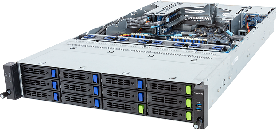 | Verpakkingsinhoud | 1 x R282-Z96 system 2 x CPU heatsinks 1 x Rail kit |