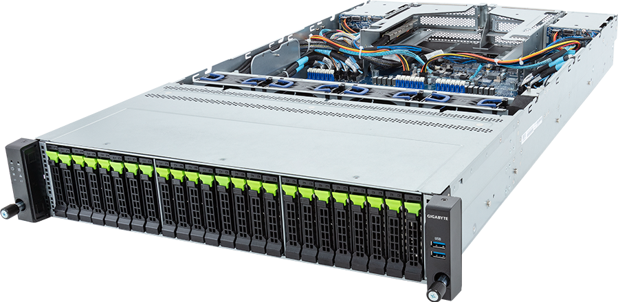 | Verpakkingsinhoud | 1 x R282-Z96 system 2 x CPU heatsinks 1 x Rail kit |