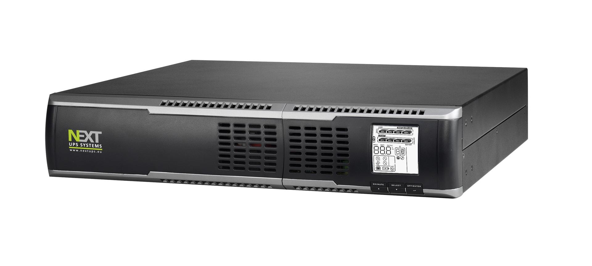 NEXT UPS Systems Logix RT 1500. UPS-topologie: Dubbele conversie (online), Output power capacity: 1,5 kVA, Uitgangsvermogen: 1350 W. Aantal AC uitgangen: 8 AC-uitgang(en). Batterij capaciteit: 9 Ah, Accu/Batterij voltage: 12 V, Accu/Batterij oplaadtijd: 4 uur. Vormfactor: Rackmontage/toren, Kleur van het product: Zwart, Rackcapaciteit: 2U. Breedte: 438 mm, Diepte: 480 mm, Hoogte: 88 mm