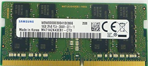 Samsung M471A2K43EB1-CTD. Component voor: Laptop, Intern geheugen: 16 GB, Geheugenlayout (modules x formaat): 1 x 16 GB, Intern geheugentype: DDR4, Kloksnelheid geheugen: 2666 MHz, Geheugen form factor: 260-pin SO-DIMM