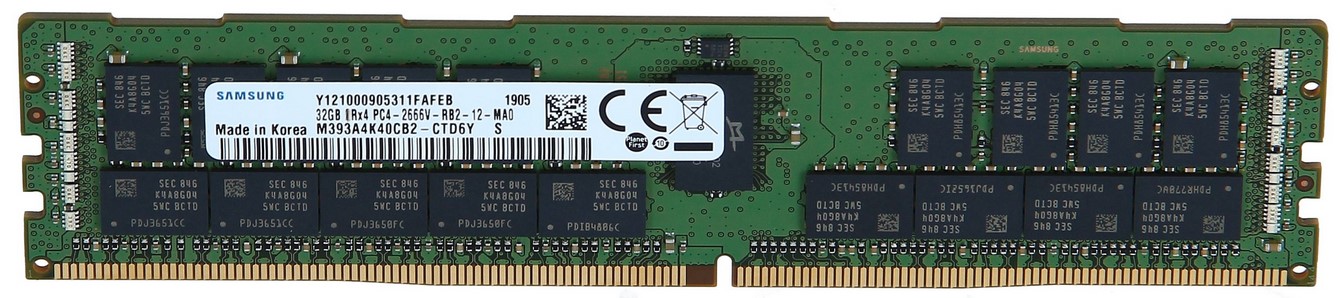 Samsung M321R4GA0PB0-CWM. Component voor: Server, Intern geheugen: 32 GB, Geheugenlayout (modules x formaat): 1 x 32 GB, Intern geheugentype: DDR5, Kloksnelheid geheugen: 5600 MHz, Geheugen form factor: 288-pin DIMM, ECC