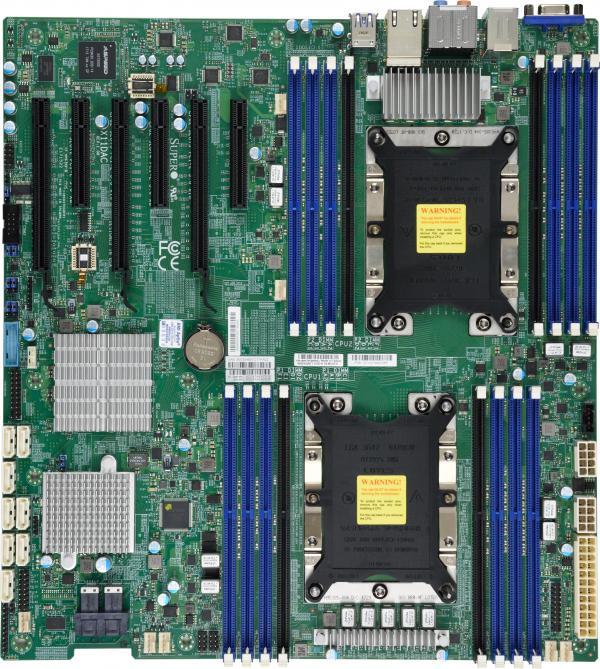Supermicro MBD-X11DAC-O. Processorfabrikant: Intel, Processor socket: LGA 3647 (Socket P), Compatibele processors: Intel® Xeon®. Ondersteunde geheugen types: DDR4-SDRAM, Maximum intern geheugen: 2 TB, Geheugen voltage: 1.2 V. Ondersteunde opslagstationinterfaces: SATA III, Soorten RAID: 0, 1, 5, 10. On-board graphics adapter model: Aspeed AST2500. Ethernet interface type: Gigabit Ethernet
