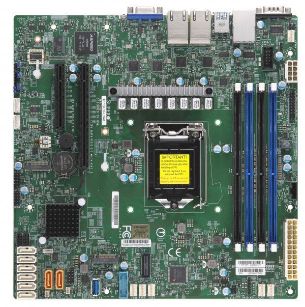 Supermicro X11SCH-LN4F. Processorfabrikant: Intel, Processor socket: LGA 1151 (Socket H4), Compatibele processors: Intel® Core™ i3, Intel® Xeon®. Ondersteunde geheugen types: DDR4-SDRAM, Maximum intern geheugen: 128 GB, Geheugen slots type: DIMM. Ondersteunde opslagstationinterfaces: SATA III. Component voor: PC, Moederbord form factor: micro ATX, Moederbord chipset familie: Intel. BIOS type: UEFI, Grootte BIOS-geheugen: 256 Mbit