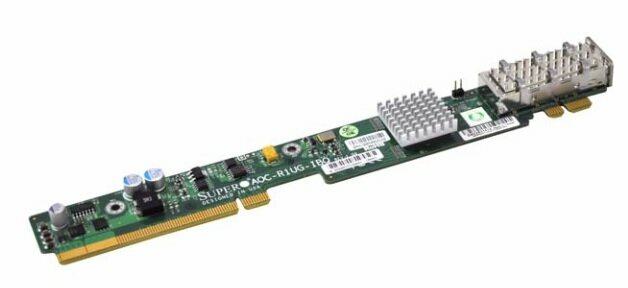 Supermicro AOC-R1UG-IBQ. Intern. Connectiviteitstechnologie: Bedraad, Interface: Fiber. Maximale overdrachtssnelheid van gegevens: 40000 Mbit/s. Kleur van het product: Zwart, Groen, Grijs