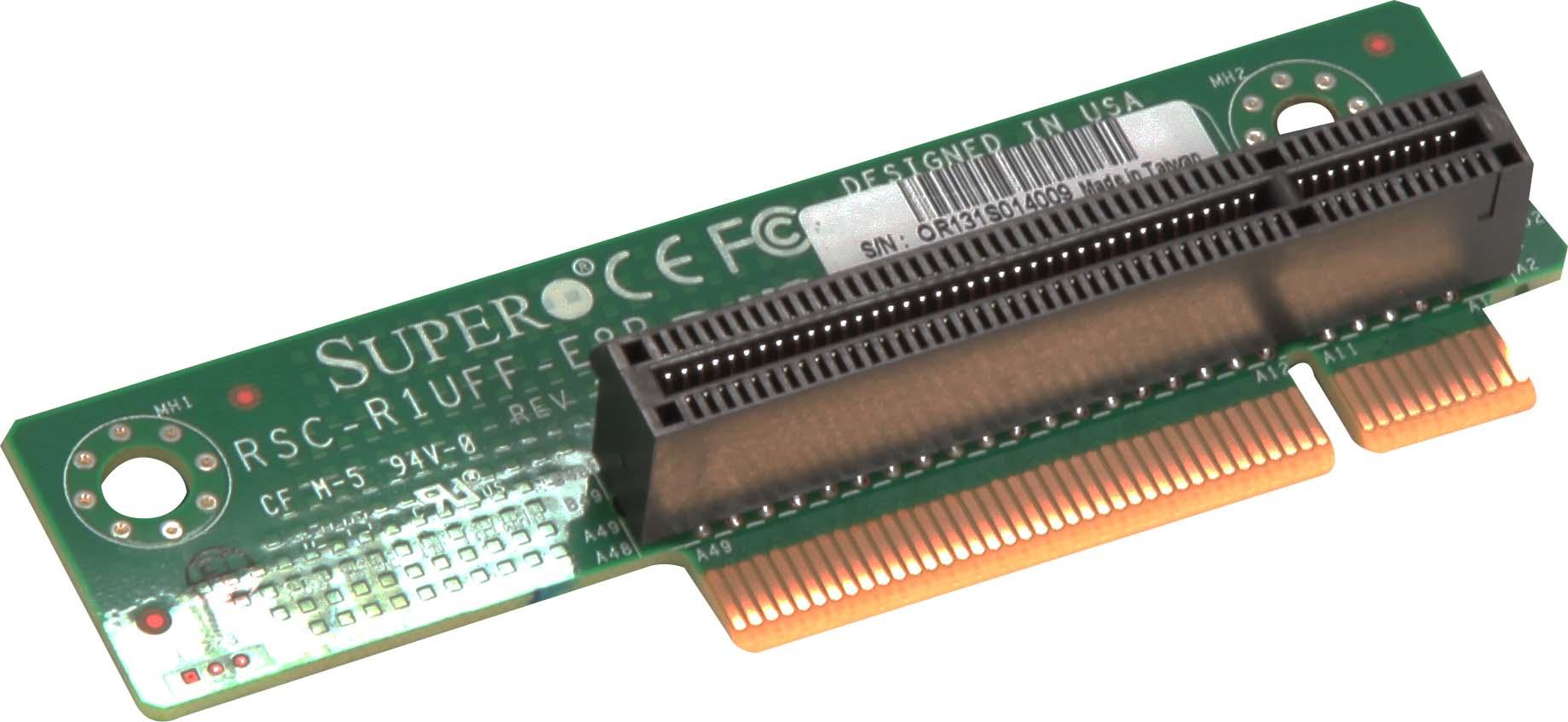 Supermicro RSC-R1UFF-E8R. Output interface: PCIe, Uitbreidingskaartstandaard: PCIe 3.0. Kleur van het product: Zwart, Groen, Bedoeld voor: Server