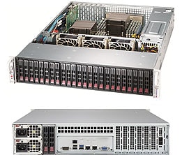 Supermicro SSG-2029P-ACR24L. Processor socket: LGA 3647 (Socket P), Processorfamilie: Intel® Xeon®, Systeembus: 10,4 GT/s. Ondersteunde geheugen types: DDR4-SDRAM, Maximum intern geheugen: 2 TB, Maximum UDIMM geheugen: 2 TB. Opslagschijf afmetingen ondersteund: 2.5", Ondersteunde opslagstationinterfaces: Serial Attached SCSI (SAS)-3, SATA III, Soorten RAID: 0, 1, 5, 10. On-board graphics adapter model: Aspeed AST2500. Ethernet interface type: 10 Gigabit Ethernet, Ethernet LAN, data-overdrachtsnelheden: 10000 Mbit/s, LAN controller: Intel® X557, Intel® X722