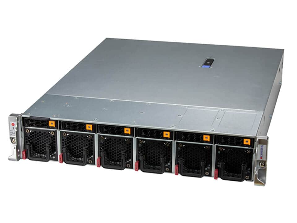Supermicro SYS-220HE-TNRD. Chipset moederbord: Intel C621A, Processor socket: LGA 4189. Ondersteunde geheugen types: DDR4-SDRAM, Maximum intern geheugen: 8 TB, Ondersteunende RDIMM klok snelheden: 3200 MHz. Opslagschijf afmetingen ondersteund: 2.5,M.2, Ondersteunde types opslag-drives: HDD & SSD, Ondersteunde opslagstationinterfaces: SATA III. Ethernet interface type: Gigabit Ethernet, Ethernet LAN, data-overdrachtsnelheden: 10,100,1000 Mbit/s. Type behuizing: Rack (2U), Kleur van het product: Zilver, LED-indicatoren: Storing, HDD, LAN, Stroom