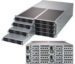 Supermicro SuperServer F619P2-RTN. Chipset moederbord: Intel® C621, Processor socket: LGA 3647 (Socket P), Systeembus: 10,4 GT/s. Ondersteunde geheugen types: DDR4-SDRAM, Maximum intern geheugen: 1,5 TB, Maximum UDIMM geheugen: 1,5 TB. Opslagschijf afmetingen ondersteund: 2.5", Ondersteunde opslagstationinterfaces: SATA III, Soorten RAID: 0, 1, 5, 10. On-board graphics adapter model: Aspeed AST2500. PC gezondheids monitor: CPU, Ventilator, Temperatuur