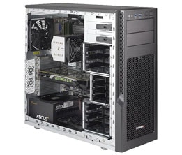 Supermicro SuperServer 5039AD-I. Type behuizing: Mid-Tower, Type product: Barebone werkstation. Chipset moederbord: Intel® X299, Processor socket: LGA 2066 (Socket R4), BIOS type: UEFI. Ondersteunde geheugen types: DDR4-SDRAM, Aantal geheugenslots: 8, Maximum intern geheugen: 128 GB. Ondersteunde types opslag-drives: HDD & SSD, Opslag schijf-interface: M.2, SATA III, Soorten RAID: 0, 1, 5, 10. Aantal Ethernet LAN (RJ-45)-poorten: 2. Type koeling: Actief. Netvoeding: 750 W