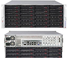 Supermicro SuperStorage Server 6047R-E1R36L. Chipset moederbord: Intel® C602J, Processor socket: LGA 2011 (Socket R), Processorfamilie: Intel. Ondersteunde geheugen types: DDR3-SDRAM, Ondersteunend DIMM module capaciteiten: 16GB, 1GB, 2GB, 32GB, 4GB, 8GB, Maximum UDIMM geheugen: 512 GB. Opslagschijf afmetingen ondersteund: 3.5", Ondersteunde opslagstationinterfaces: Serial Attached SCSI (SAS), SATA, Soorten RAID: 0, 1, 5, 10. On-board graphics adapter model: Matrox G200. Ethernet interface type: Fast Ethernet, Gigabit Ethernet, Ethernet LAN, data-overdrachtsnelheden: 10,100,1000 Mbit/s, Koperen ethernetbekabelingstechnologie: 1000BASE-T, 100BASE-TX, 10GBASE-T