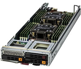 Key Applications - Enterprise data center - EDA, Cloud - High-performance Computing (HPC) Key Features 1. 100 servers per 42U Rack2. Dual socket E (LGA-4677) supports 5th/4th Gen Intel® Xeon® Scalable processors3. Intel® C741 chipset4. 16 DDR5 DIMM slots, 1DPC with 5600MHz ECC RDIMM5. Support up to 8 drives per blade6. Dual-port 25G Ethernet (LOM), additional 200G/100G InfiniBand or dual-port 25G Ethernet via mezzanine card7. OCP 3.0 network card support, e.g. 400G NDR InfiniBand card*8. Liquid cooling solution is available** Please contact your Supermicro sales rep for more info. |