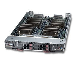 Supermicro SBI-7227R-T2. Chipset moederbord: Intel® C602, Processor socket: LGA 2011 (Socket R), Processorfamilie: Intel. Ondersteunde geheugen types: DDR3-SDRAM, Ondersteunend DIMM module capaciteiten: 16GB, 1GB, 2GB, 32GB, 4GB, 8GB, Maximum intern geheugen: 256 GB. Opslagschijf afmetingen ondersteund: 2.5", Ondersteunde opslagstationinterfaces: SATA III, Soorten RAID: 0, 1, 5, 10. Ethernet interface type: Gigabit Ethernet, Ethernet LAN, data-overdrachtsnelheden: 1000 Mbit/s. BIOS type: AMI, Grootte BIOS-geheugen: 64 Mbit